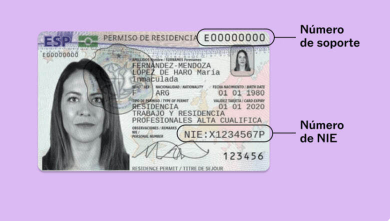 Número de soporte — указан на карте иностранца (TIE), на лицевой стороне в правом верхнем углу и состоит из буквы E и 8 цифр. Если цифр меньше 8, необходимо добавить недостающие нули слева.